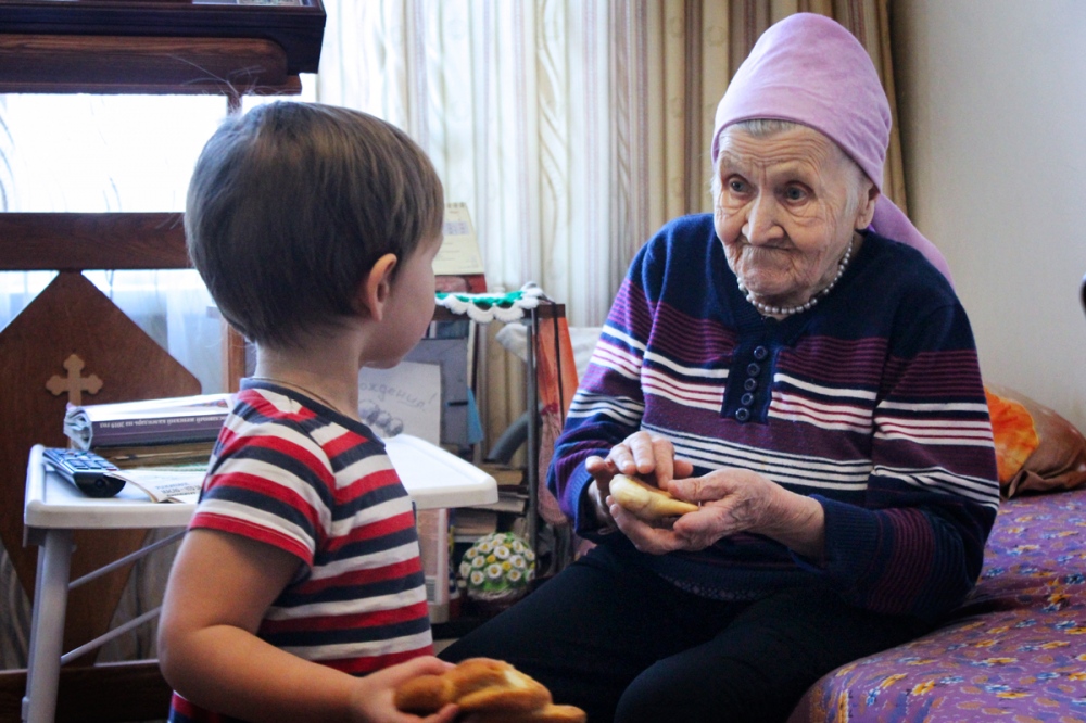 Дети вручили подопечным обители милосердия праздничную выпечку. Общению и вниманию были рады и почтенные «хозяева» богадельни и маленькие гости.