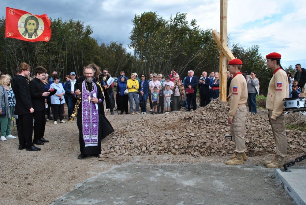 Хабаровский священник освятил Поклонный крест в честь 170-летней годовщины победы над английским десантом в заливе Де-Кастри